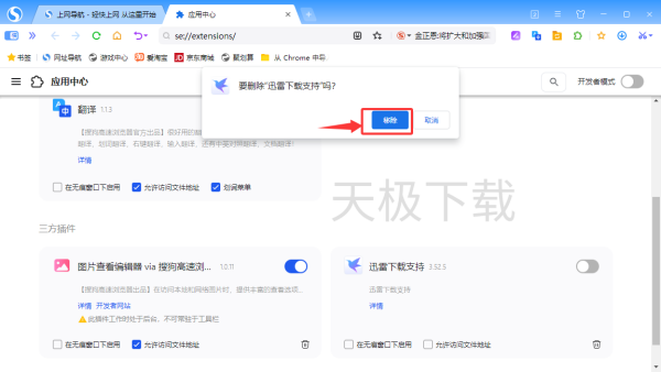 4.点击【确认移除】,即可删除扩展程序。