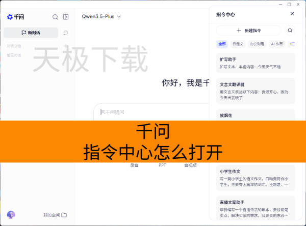 千问的指令中心,是其内置在对话框快捷功能区、面向用户高频细分使用场景的标准化Prompt模板库与自定义指令管理功能模块,核心作用是降低用户重复输入专业提示词的成本,大幅提升AI交互与任务执行效率,它既内置了覆盖内容创作、职场办公、学习教育等多领域的现成指令模板,用户一键调用即可让AI按预设的专业逻辑输出对应内容,同时也支持用户新建、编辑和管理自定义指令,可将常用的优质提示词固化保存并快速复用,充分适配用户个性化的使用需求。
