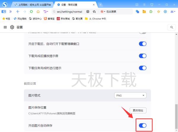 搜狗浏览器支持截图自动保存,用户可以在截图设置中开启该选项。