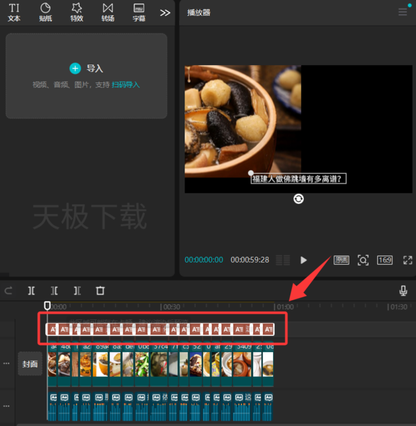 2.选中时间轴上的所有字幕素材;