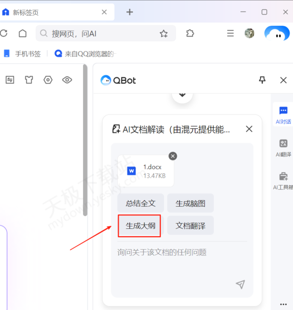 QQ浏览器AI文档大纲总结图文教程