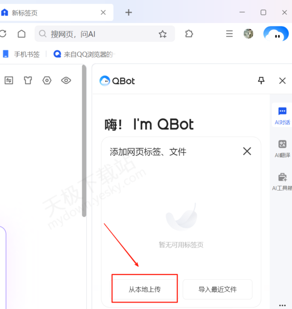 2.在Qbot功能页面中,点击下方的“文件上传”按钮。