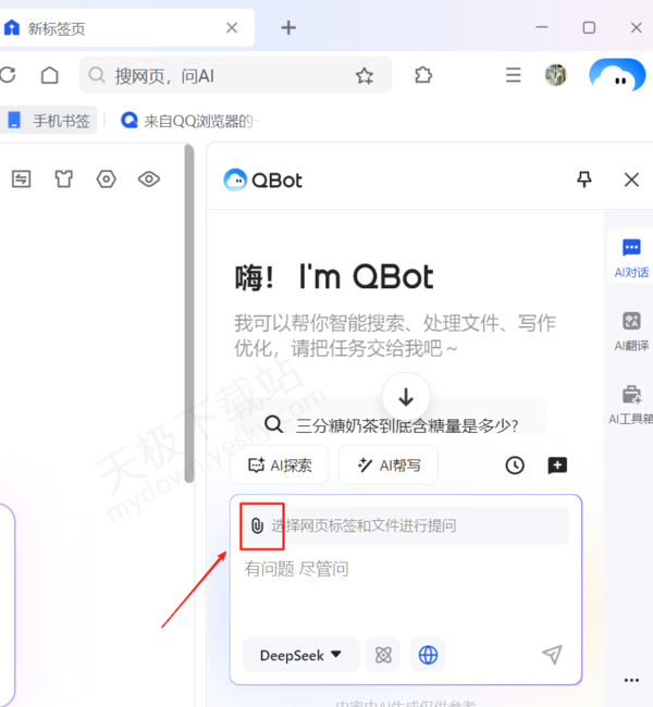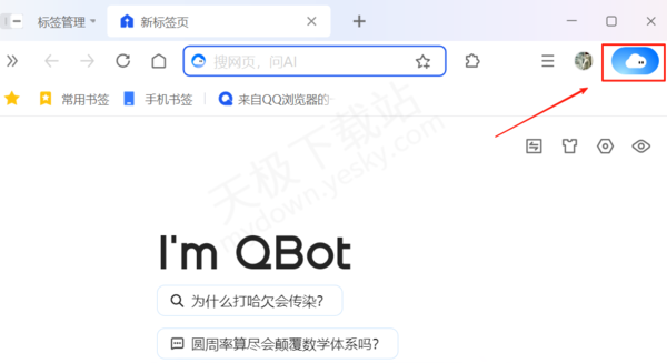 1.下载并打开最新版本的QQ浏览器,点击右上角的Qbot图标进入智能助手界面。