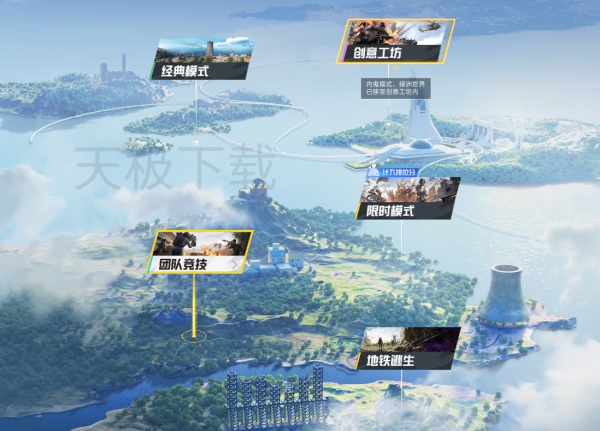 经典模式:如海岛、雨林、雪地等地图的百人空降生存玩法。