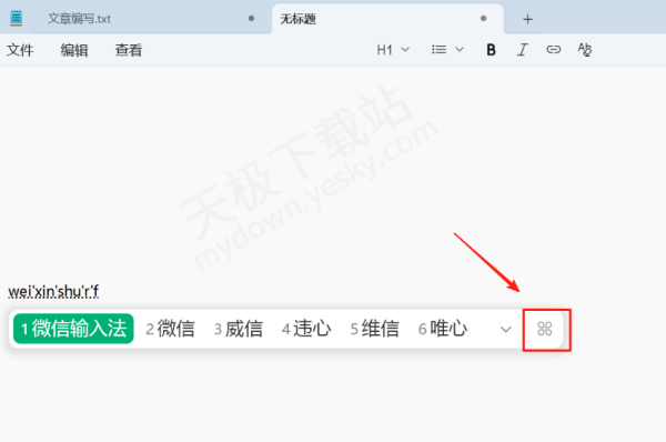 1.下载最新版本的微信输入法,使用键盘【Win+空格】,将微信输入法设成默认输入法,输入任意文字,点击右侧【工具】选项。