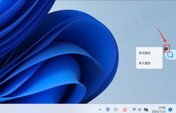 1.在桌面找到AI助手的窗口,用鼠标点击右上角的【×】按钮,随后在弹出的选项中选择【本次退出】或【永久退出】即可。