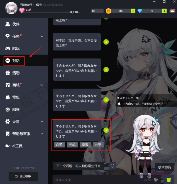 2.完成设置后,重新与游戏伙伴进行语音对话,你就会发现伙伴的输出语音已经切换成日语啦。