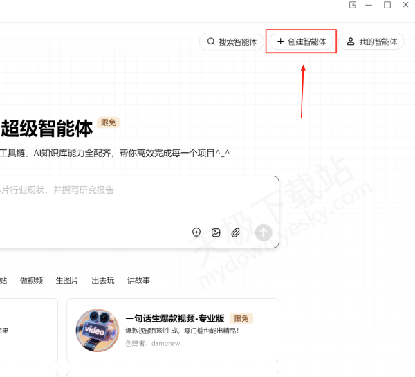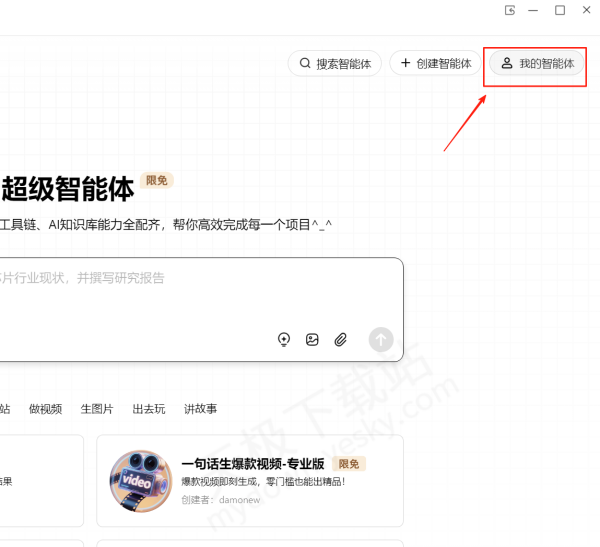纳米AI电脑版智能体在哪删除1.在智能体页面右上角点击【我的智能体】。
