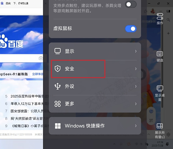 3.点击手机端左侧【操作】-【安全】。